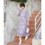 ドレス 【LEJA】ハイネック花柄レースウエストマーク透けロングドレスワンピース美脚効果結婚式 パーティードレス